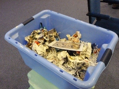 The core of the activity is simple – fill a box with layers of paper and bury amidst the layers photographs of archaeological finds for pupils to ‘excavate’. It’s obviously not ‘real archaeology’ but with your ability to create interest and excitement and a sense of discovery it can be a memorable experience and has lots of potential for worthwhile history. And if you don’t do it this way – how else can you convey the excitement of discovery?