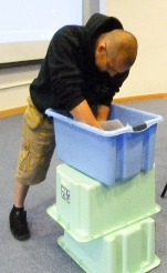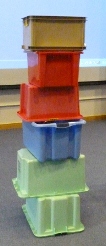 1. Gather a number of stacking boxes (could be cardboard boxes or any kind). They represent the archaeological layers/periods e.g. from top of pile downwards: