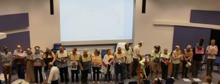 • Have students stand in a slight crescent so everyone can see everyone else. A straight line doesn’t work for visibility.