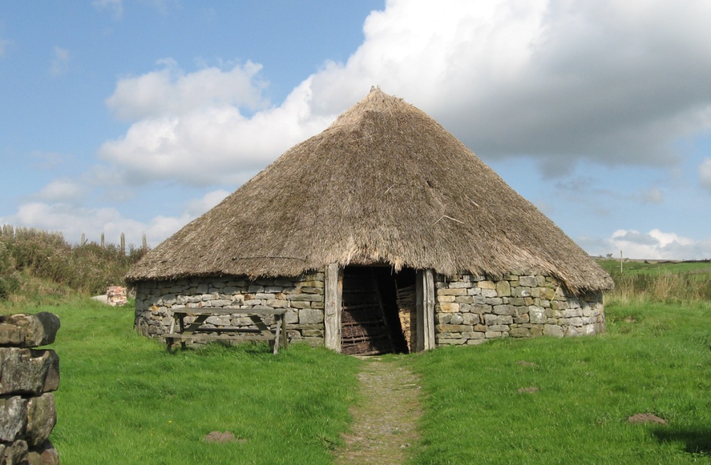 A roundhouse at Brigantium in Redesdale, Northumberland, adjacent to the Roman fort of Bremenium (High Rochester). Thanks to the Brigantium Archaeological Reconstruction Centre. |
