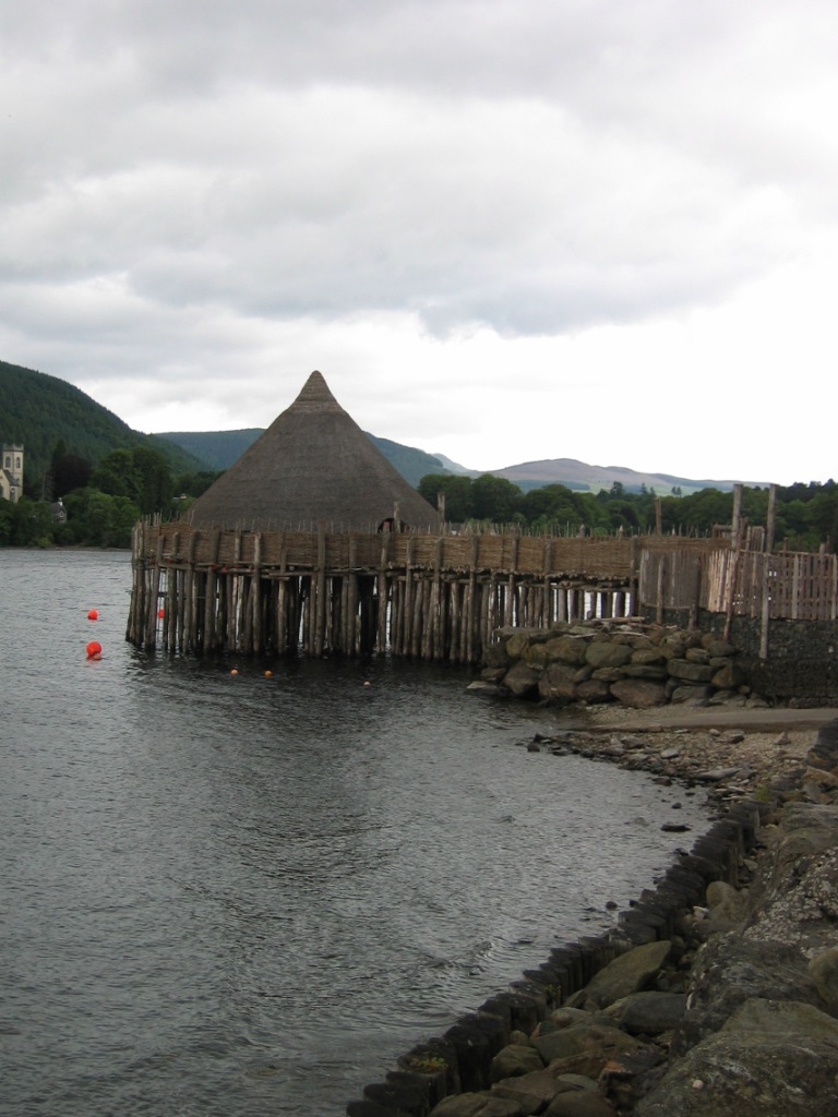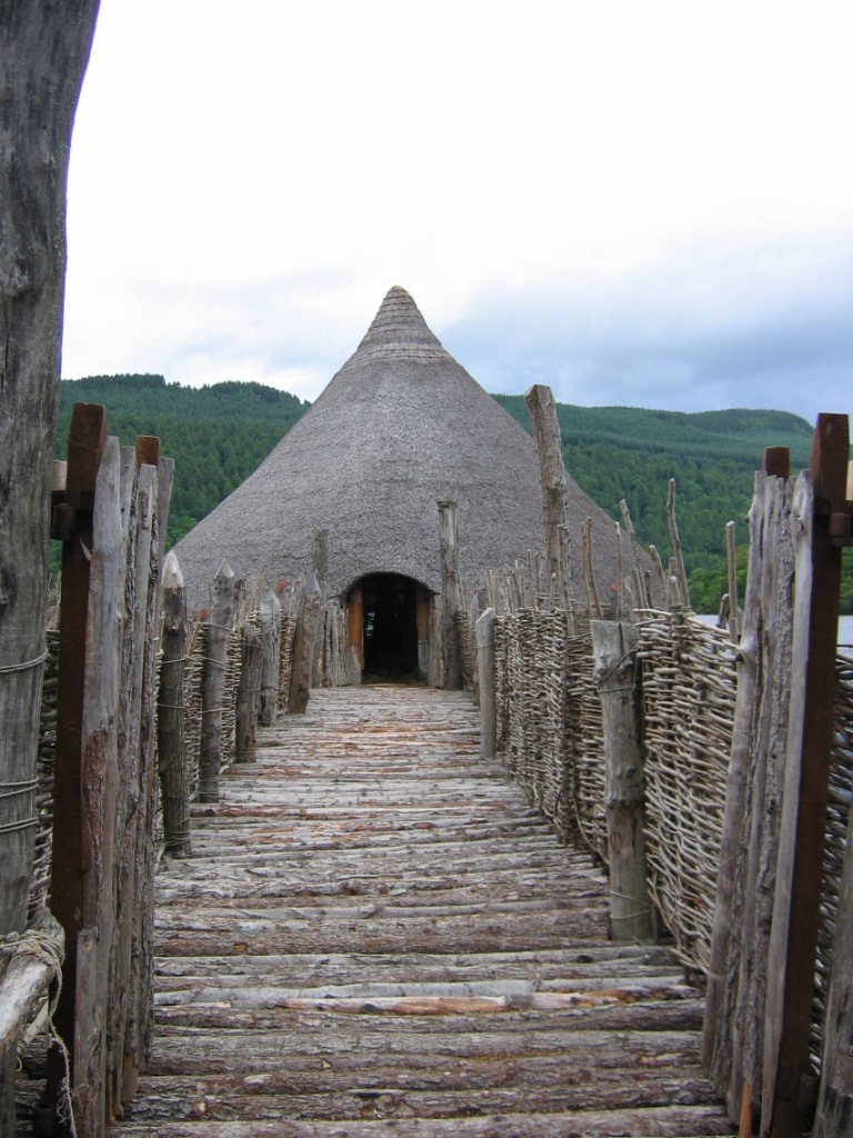 A crannog, a loch-side dwelling found in Scotland and Ireland. Thanks to the Scottish Crannog Centre on Loch Tay, Perthshire. |