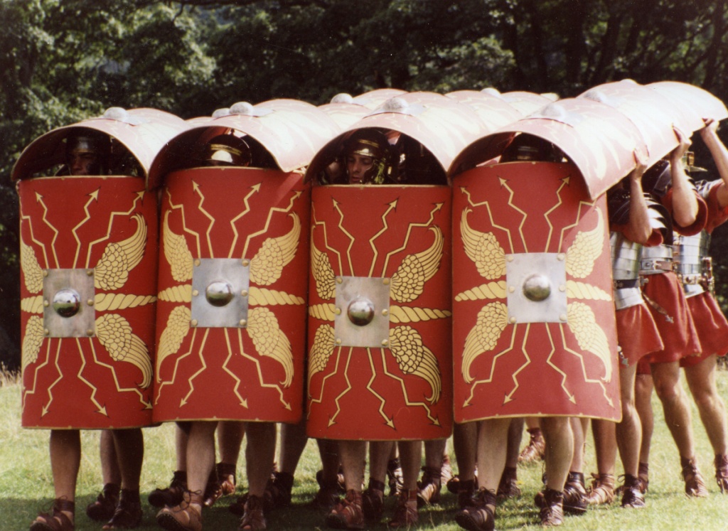 A testudo with Ian somewhere in the middle, desperately keeping step – sin, sin, sin dex sin! Thanks to the Ermine Street Guard. |
