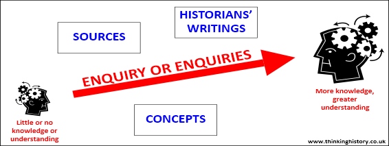 As Diagram 1 sets out, we begin with little or no knowledge (a few shards of information or a vague understanding of why the topic was important) and by the end of the study (a few lessons, a term, an A level course, a PhD) we become a great deal more knowledgeable – we hold far more information in our heads and our files and use it to explain what happened and why, the consequences and significance of events, how interpretations of the topic differ and, maybe, the historiography has developed.