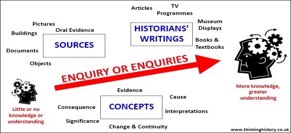 This article offers ideas for discussion about the overall shape of what students understand about the process of studying history – the focus is the big picture (not the details) that students build in Key Stage 3 and develop at GCSE and A level as they move towards working independently.