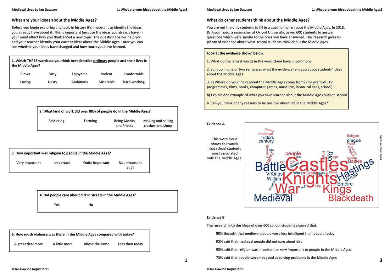 Secondly this chapter sets up the overall enquiry ‘Are people right to be so negative about the Middle Ages?’. Each chapter of ‘Medieval Lives’ will feed into this enquiry to a greater or lesser extent. This chapter could equally well be used to link together your own classroom materials.